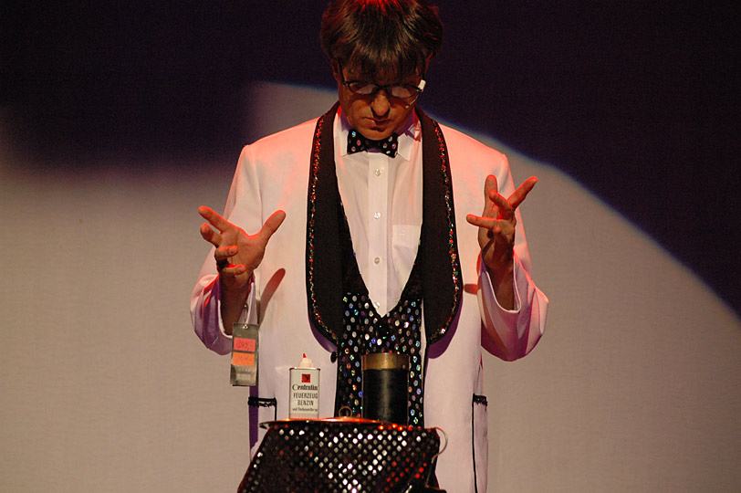 "Ob mit bestellten Kunststücken aus dem Versandhauskatalog oder mit eigens kreierten Choreographien nach D.J. Bobo, der Forrest Gump unter den Magiern lässt keine Gelegenheit aus, durch seine unglaublichen Tricksereien, die richtige Frau fürs Leben zu finden."